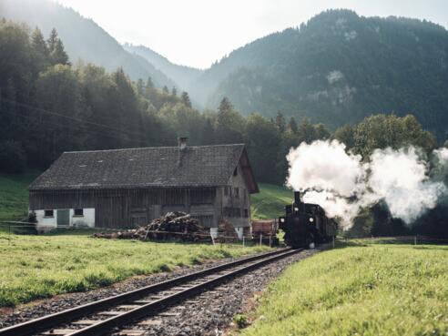 „Fahr mr no a kläle, fahr mr no a kläle, mit dom Wälder Isobähnle“ – mit historischen Dampf- und Diesellokomotiven werden 5 km der einstigen Strecke zwischen den Bahnhöfen Bezau und Schwarzenberg befahren. Ein nostalgisches Vergnügen für Ausflügler, Urlauber und Eisenbahnfreunde. Tickets sind vor Ort am Schalter erhältlich.