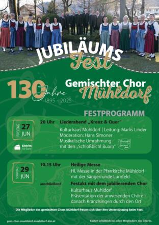 Herzliche Einladung zur 130-Jahr-Feier des Gemischten Chors Mühldorf mit einem Liederabend "Kreuz & Quer" im Kulturhaus.
