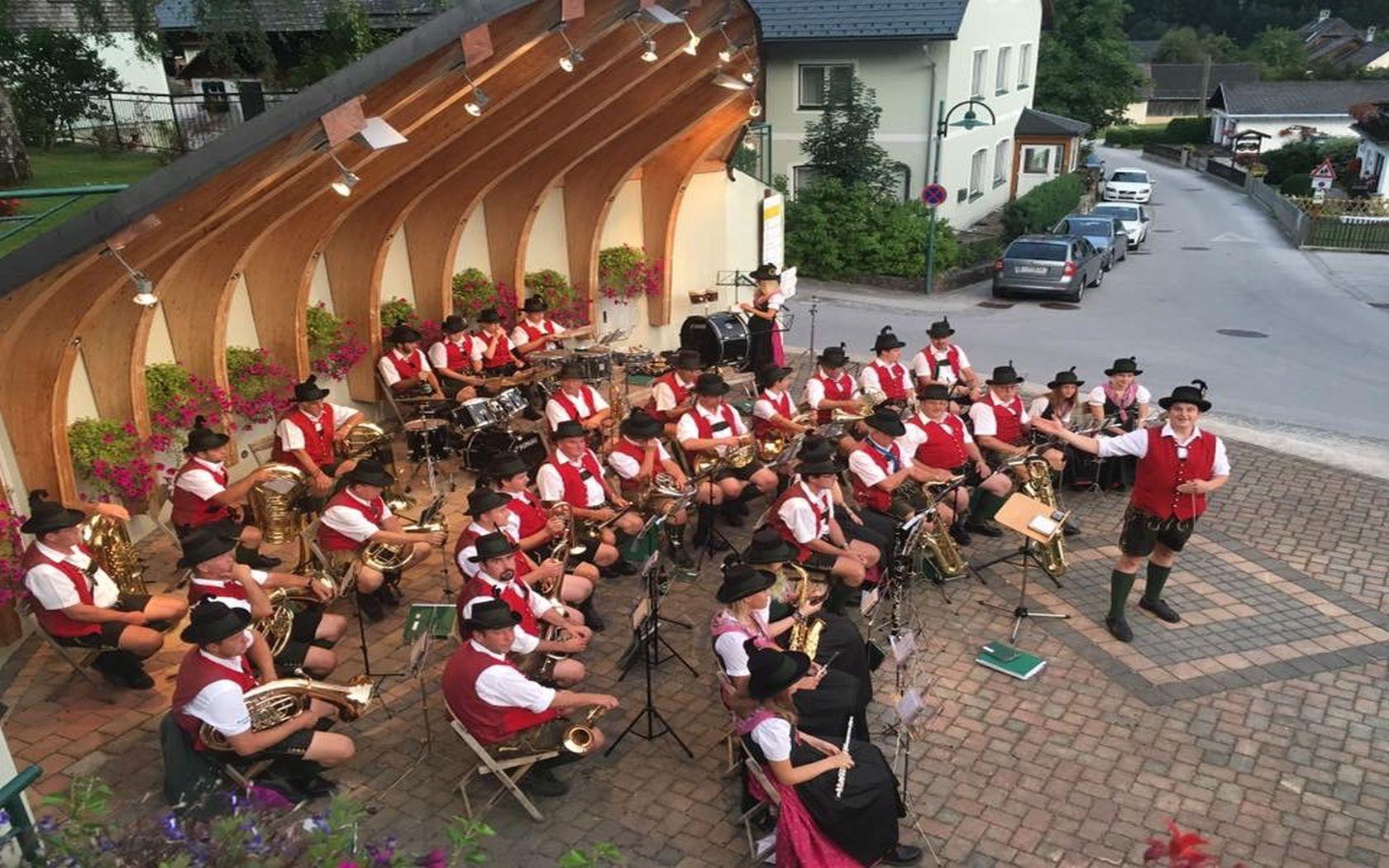Die Trachtenkapelle erfreut die Bevölkerung mit traditioneller Marschmusik.