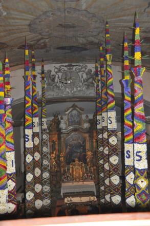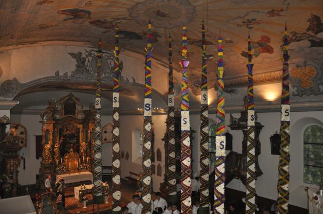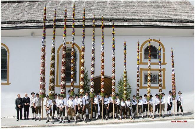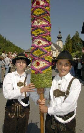 Aufstellung der Prangstangen beim Feuerwehrhaus - Dorfplatz. Unter Begleitung der Trachtenmusikkapelle Zederhaus werden die Prangstangen in die Pfarrkirche gestellt. Anschließend ist eine Agape beim Gemeindehaus und Zapfenstreich der TMK-Zederhaus beim Gasthof Kirchenwirt.