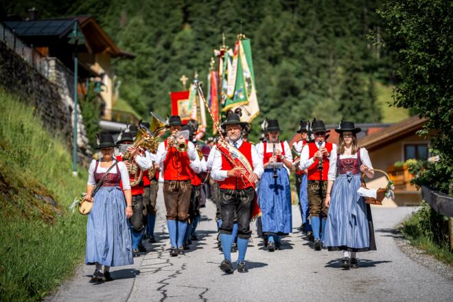 Tag der Blasmusik in Hüttschlag. Die Trachtenmusikkapelle Hüttschlag spielt Ständchen von Hüttschlag Hinterland bis zum Ortsteil Wolfau.