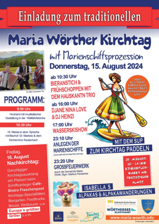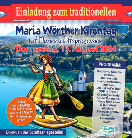Am 16. August, ganztägiger Nachkirchtag beim Cafe Bistro Flaschenpost, direkt beim Schiffsanleger in Maria Wörth.