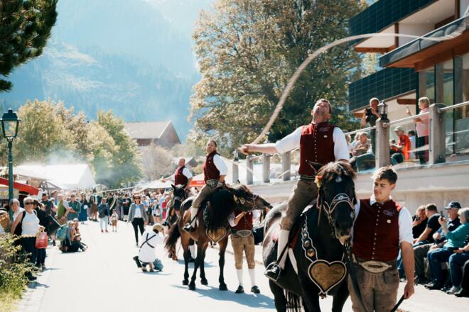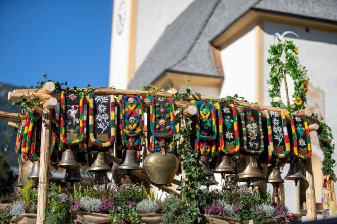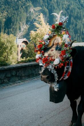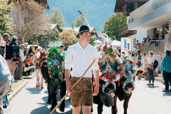 bei dem prächtig geschmückte Kühe von der Alm ins Tal zurückkehren.