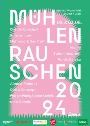 Das Mühlenrauschen festival findet dieses Jahr erneut am Gelände der Mühle am Wayerfeld statt. Am 2. und 3. August 2024heißt es indoor und outdoor Konzerte lauschen, tanzrn und feiern. Von R&B, Jazz, Electonica, Drum&Bass, Soul bis zu Punk, Pop oder Hip Hop ist das Festival wie gewohnt musikalisch vielseitig. Wichtige Elemente des Festivals sind auch immer Visual, köstliches Essen und die Idyllische Atmosphäre.