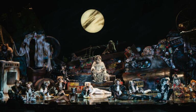 Erst sind da nur leuchtende Augen. Hier ist ein Schnurren, da ein leises Fauchen zu hören. Im silbrigen Licht des Vollmondes einer sternenklaren Nacht verwandelt sich ein Londoner Schrottplatz zum Ballsaal der Jellicle-Cats – in England kindersprachlich abgeleitet von „dear little cats“. Wir würden wohl einfach Mietzekatzen sagen. Mit schwindelerregend akrobatischen Choreografien, Zaubertricks und schwingenden Hüften wetteifern die Charakterkatzen um die Gunst ihres weisen Anführers, Kater Old Deuteronomy. Er wird die eine Katze erwählen, die das Wunder der Wiedergeburt erleben darf! Nach und nach stellen sich die Samtpfoten vor. Und wenn sich dann die ausgestoßene alternde Diva Grizabella nach vorn traut und von glücklicheren Tagen singt, wird es mucksmäuschenstill: Mit „Memory“ schenkt sie dem Publikum einen der größten Momente der Musicalgeschichte.