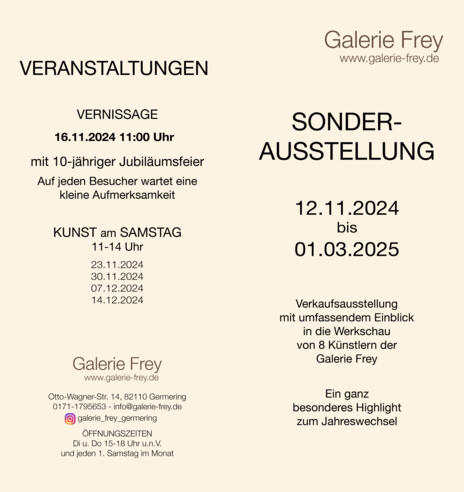 Verkaufsausstellung mit umfassendem Einblick in die Werkschau von 8 Künstlern der Galerie Frey. Ein ganz besonderes Highlight zum Jahreswechsel