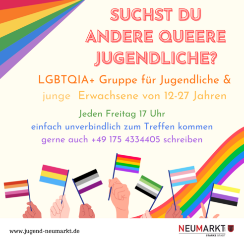 Suchst du andere queere Jugendliche?Einfach unverbindlich zum Treffen kommen!