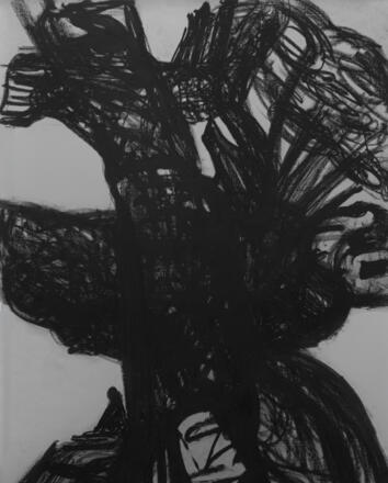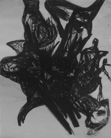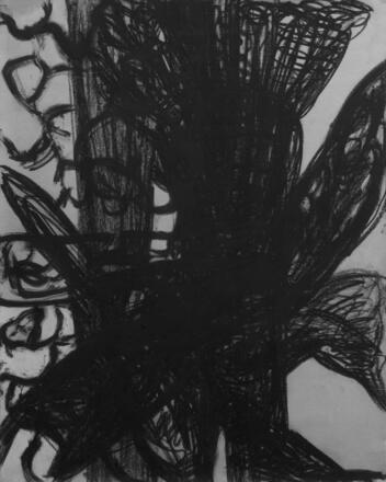 Mit der Hinwendung zur schwarzen Zeichnung unternimmt Pia Mühlbauer Mitte der 1980er Jahre einen folgenreichen Schritt für ihr künstlerisches Werk. Der Bildentwurf ereignet sich in einer Ausschließlichkeit ansichtig strebender Kräfte unmittelbar auf dem Blatt.