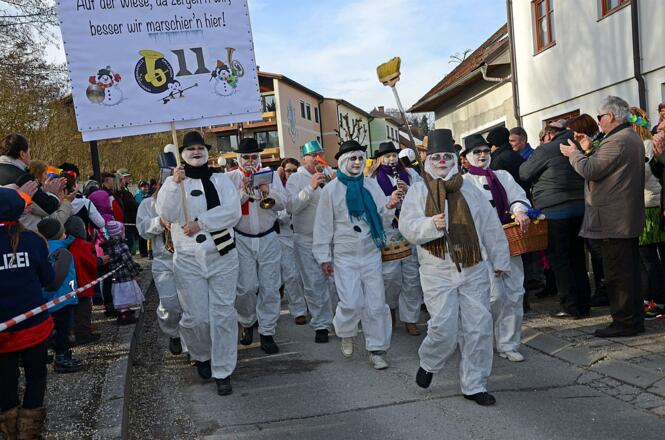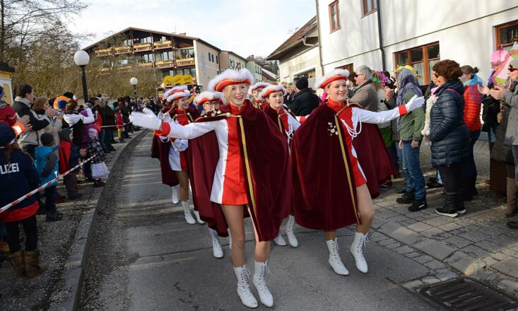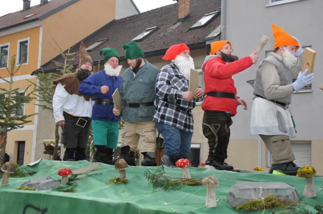 Großer Faschingszug mit ca. 40 Wägen oder Fußgruppen
