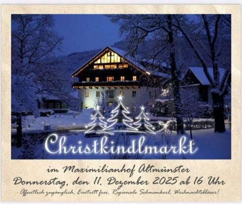 Öffentlich zugänglicher Christkinklmarkt untermalt mit weihnachtlichen Bläsern.