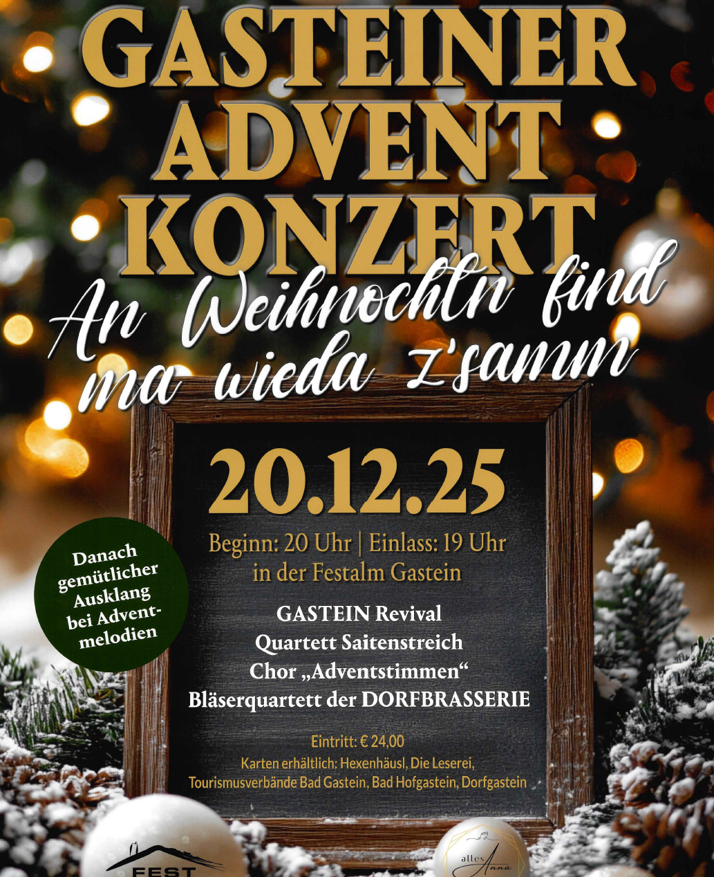 GASTEIN Revival, Quartett Saitenstreich, Chor "Adventstimmen", Bläserquartett der DORFBRASSERIE