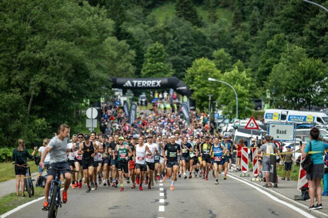 ab ca. 13:45 Uhr 1. Läufer Walser Ultra und Walser Trail - Hirschegg, Start-/Zielbereich