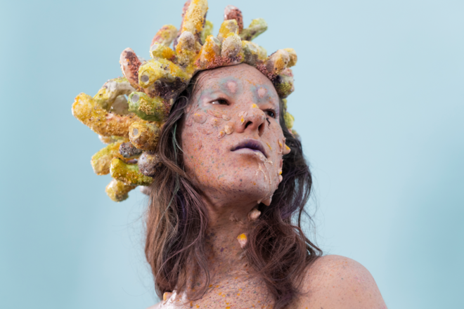Ihr Ausgangsmaterial findet sie in der Literatur und der Popkultur und sie vereint bildhauerische, digitale und audiovisuelle Techniken, um dem Publikum ein vollständiges Universum zu bieten, das mit persönlichen Assoziationen gefüllt werden kann.