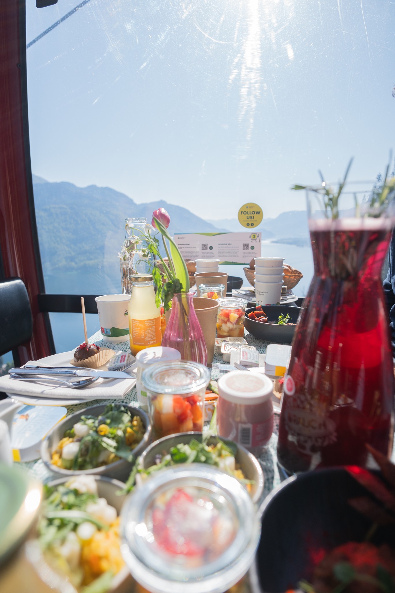 Bitte beachten Sie, dass wir aus logistischen Gründen keine Rücksicht auf Allergien, Intoleranzen und Präferenzen nehmen können. Es sind jedoch viele vegetarische (nicht vegane) Produkte im Frühstück enthalten.