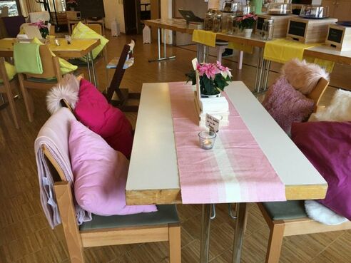 Junge Menschen mit Beeinträchtigungen führen ein Café: Gäste begrüßen, Bestellungen aufnehmen, einfach Gastgeber sein. Der große Gemeindesaal der evangelischen Kirche in Bad Tölz wird in dieses wunderschöne Café verwandelt. Mehr unter www.cafemiteinand.de