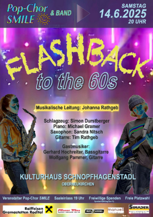 Der Popchor „Smile“ präsentiert unter der Leitung von Johanna Rathgeb an diesem musikalischen Abend mitreißende Highlights aus den 60er Jahren, kombiniert mit szenischen Dialogen.