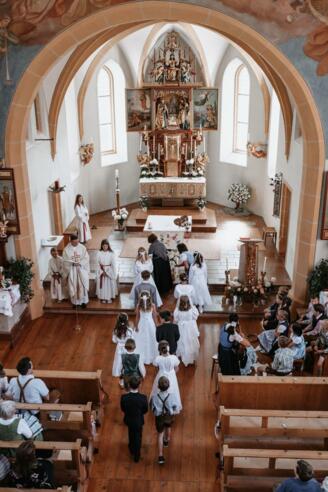 Feierlich umrahmt wird die Erstkommunion von der Trachten- und Schützenmusikkapelle Lessach.