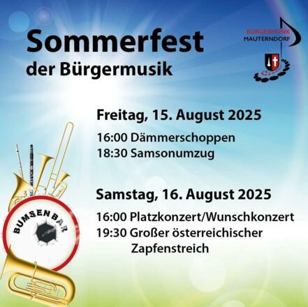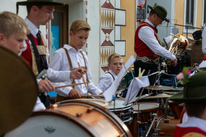 ab 10.00 Uhr Frühschoppen, Tagesunterhaltung und um 18.30 Uhr Samsonumzug ab Schlosstrattl
