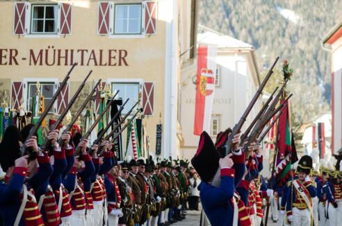 Samsontanz beim Gemeindeamt mit den Schrefelschützen - Gemeinsamer Abmarsch zum Taurachanger - Anschließender Auftritt der Schörgen-Toni-Musi beim Festplatz
