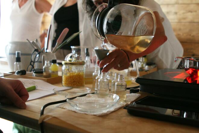 Die Welt der Grünen Kosmetik eröffnet einen Weg zu bewusster, nachhaltiger Körperpflege ohne Schadstoffe und (Mikro-)Plastik. Im Kurs werden einfache Techniken vermittelt, um mit Kräutern und alltäglichen Zutaten pflegende Produkte herzustellen. Entstehen werden unter anderem ein Kräuterdeo, eine vielseitige Schüttel-Lotion und ein Hautbalsam. Neben praktischem Tun wird Wissen zur Wirkung der Inhaltsstoffe vermittelt. Kursmaterialien und ein ausführliches Skript sind im Preis enthalten. Ein praktischer Einstieg in die natürlichste und schonendste Hautpflege für die ganze Familie.