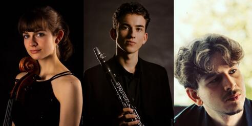 Drei junge Musiker, keiner älter als fünfundzwanzig und somit der vieldiskutierten „Generation Z“ angehörig, haben sich zum „Trio Con Brio“ zusammengefunden. Alle drei stammen aus Vorarlberg, sind höchst erfolgreich auf ihrem Instrument, was sich bereits in Wettbewerbspreisen und respektablen Engagements niederschlägt. Ihre Formation mit Klarinette (Alexander Svetnistky-Ehrenreich), Violoncello (Hannah Amann) und Klavier (David Mikic) ist ungewöhnlich, aber ein äußerst genussreiches Hörerlebnis. Ein herausragender Konzertabend ist somit garantiert. Das Programm führt vom berühmten, immer wieder gerne gehörte Klarinettentrio von Brahms hin zu dem recht unbekannten Paul Juon, dessen Familie aus Graubünden stammte, jedoch ins damals zaristische Russland ausgewandert ist. Paul Juon ging jedoch wegen der politischen Umbrüche wieder in die Schweiz zurück. Den Schluss bildet Nino Rota, weltberühmt geworden als Komponist von 150 Filmmusiken u.a. für Fellini, Zeffirelli oder Visconti. Dass er auch eine große Anzahl von klassischen Werken geschrieben hat, zum Beispiel dieses wunderbare Klarinettentrio, ist kaum bekannt.