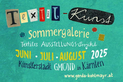 Von Juni bis August präsentiert die Textilkünstlerin GERDA KOHLMAYR erstmals eine Sommergalerie für Textile Kunst in Gmünd. Im Rahmen von Themenausstellungen präsentieren Designer:innen Unikate aus den Bereichen Textilkunst, Ökomode, Textilschmuck, Handgewebtes, textiles Handwerk, freies Textil, Gesticktes, Gefilztes, Gedrucktes und vieles mehr. Ein neuer Treffpunkt für alle Freund:innen der Textilen Kunst! Textile Mini-Workshops ergänzen das vielfältige Angebot.