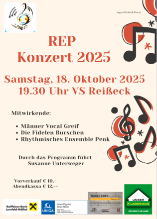 Mitwirkende: Männer Vocal Greif, Die Fidelen Burschen, Rhythmisches Ensemble Penk
