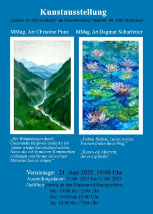 Kunstausstellung in der Galerie am Oberen Markt (Scharfetterhaus, Marktstr. 64 in St. Michael von MMag. Art. Christine Punz & MMag. Art. Dagmar Scharfetter