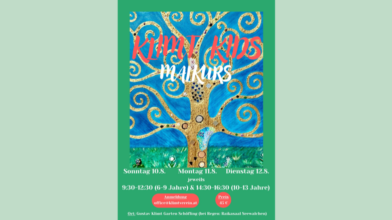 Bei Schönwetter findet der Malkurs im Klimt-Garten statt. Bitte die Kinder witterungsbedingt und malgemäß kleiden, sowie eine Trinkflasche mitnehmen!