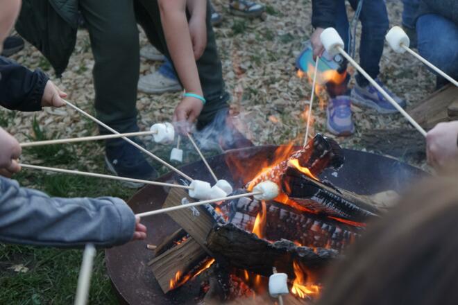 Auch für die Kinder ist gesorgt. Solange der Vorrat reicht, gibt es kostenlose Marshmallows. An vorbereiteten Feuerschalen können sie selbst grillen und zusehen, wie die Süßigkeiten über der Glut langsam goldbraun werden. Ein kleines Highlight, das jedes Jahr für leuchtende Augen sorgt.