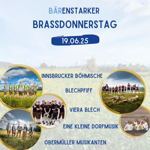 Bei unserem BÄRenstarken Brassdonnerstag gibts für eure Ohrwaschl Musikgenuss der Extraklasse.