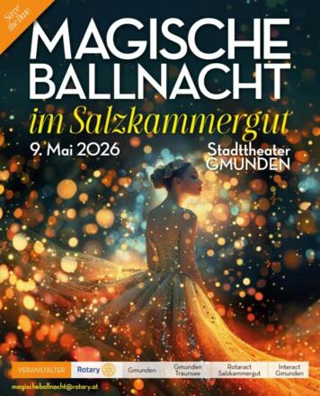 Nach dem großen Erfolg im Vorjahr und aufgrund vielfachen Wunsches findet am 9. Mai um 19:00 Uhr im Stadttheater Gmunden erneut die „Magische Ballnacht im Salzkammergut“ statt. Die Gäste erwartet ein stilvolles Programm mit musikalischen Highlights, kulinarischen Genüssen und hochwertigen Tombolapreisen. Der Ball verbindet zeitlose Eleganz mit festlichem Zauber in der besonderen Atmosphäre des renovierten Stadttheaters. Bericht zum Ball 2025 von salzi.tv.