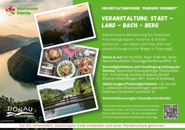 Die Veranstaltung findet im Rahmen der Eventreihe „Die Donauregion ruft zum Wanderabenteuer: Wandern verbindet“ statt – einem einzigartigen Wanderabenteuer, das dich Schritt für Schritt in guter Gesellschaft durch die gastfreundlichen Gemeinden und zu den schönsten Ecken der Donauregion führt.