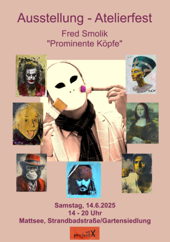 Am Samstag, 14.06.2024 präsentiert Fred Smolik seine zeitgenössische Kunst, Thema "Prominente Köpfe" in seinem Garagen-Atelier in Mattsee.
