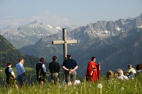 Katholische Bergmesse auf der Alpe Klank.