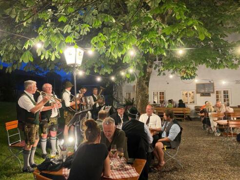 Im Biergarten mit der "Lamstoana Ziachmusi - griabig, schmissig, oimarisch! Nur bei guter Witterung.