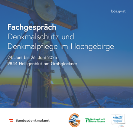 Das Bundesdenkmalamt, die Großglockner Hochalpenstraßen AG, der Nationalpark Hohe Tauern und der Tourismusverband Heiligenblut am Großglockner laden Sie herzlich zum Fachgespräch „Denkmalschutz und Denkmalpflege im Hochgebirge“ ein, das von 24. bis 26. Juni 2025 im Haus der Steinböcke stattfindet. Gemeinsam mit Expertinnen und Experten aus Denkmalpflege, Naturschutz und alpiner Raumplanung werden verschiedensten Themenschwerpunkte präsentiert, welche zu einem fachlichen Austausch anregen.