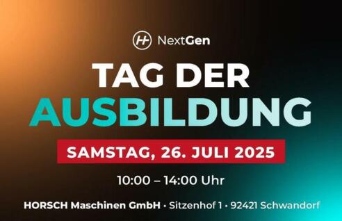 Entdecke deine Zukunft bei HORSCH!Am 26.07.2025 öffnet die Firma HORSCH Maschinen GmbH in Schwandorf/Sitzenhof ihre Türen für alle, die sich für spannende Ausbildungsberufe und duale Studiengänge interessieren. Lerne das Unternehmen hautnah kennen und informiere dich über die vielfältigen Möglichkeiten für deinen Berufseinstieg.Dich erwarten nicht nur interessante Einblicke und Gespräche, sondern auch leckere Snacks und jede Menge Mitmachaktionen Spaß und Abwechslung garantiert!