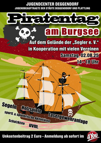 Die Piraten erobern wieder den Burgsee und erleben einen tollen Ferientag in Kooperation mit vielen verschiedenen Vereinen. Spiel, Spaß, Aktion und Bewegung kommen nicht zu kurz.