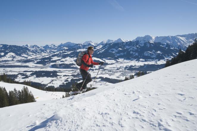 Schritt für Schritt unberührter Schnee, ein atemberaubendes Panorama und frische Bergluft genießen.