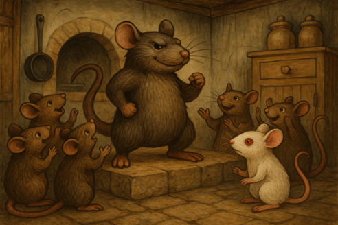 In einem großen, grauen Haus lebt eine muntere Mäuseschar. Nachts, wenn die Lampen gelöscht sind und die Menschenriesen schlafen, kommen die Mäuse aus ihren Löchern hervor. Sie tollen umher, lassen sich allerlei Köstlichkeiten schmecken und leben als sorgloses Rudel. Bis eines Tages der überaus starke Willibald die Angst vor der Katze nutzt, um sich als angeblicher Beschützer und Boss aufzuschwingen. Nach und nach wird ein Netz des Machtmissbrauchs, der Kontrolle und Manipulation gewoben, welches das Rudel gefangen hält.