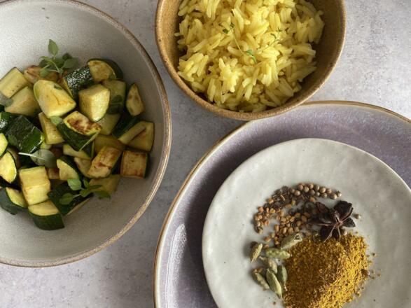 Wir bereiten köstliche, einfache Gerichte zu, mit allen Komponenten einer bekömmlichen, ayurvedischen Mahlzeit. Von Dal, Curry, Gemüse- und Reisgerichten bis hin zu Chutneys, Desserts und Frühstücksideen ist alles mit dabei, stets im Einklang mit der jeweiligen Jahreszeit.