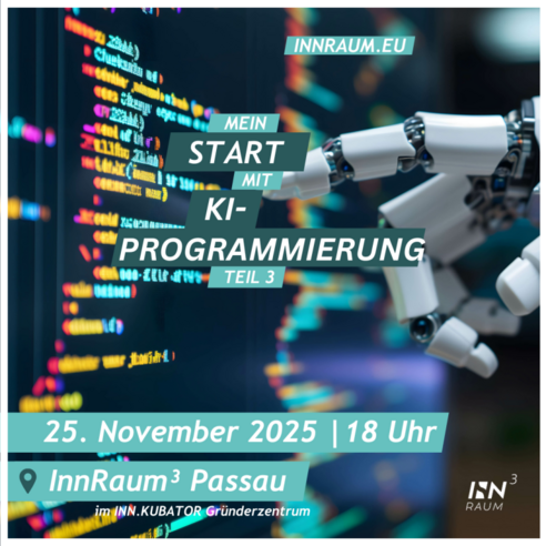 --------Diese Veranstaltung wird organisiert und gefördert im Rahmen des durch INTERREG VI-A Bayern - Österreich 2021-2027 geförderten Projektes InnRaum³ (BA0100019).Du erklärst Dich mit Deiner Anmeldung zur Veranstaltung einverstanden, dass auf der Veranstaltung auch Aufnahmen (z.B. Fotos/Videos) gemacht werden, auf denen Du zu sehen bist. Der InnRaum³ mit seinen Partnern darf diese Aufnahmen für Zwecke seiner Öffentlichkeitsarbeit (z.B. Homepage, Social Media, Presse etc.) verwenden. Für den Fall, dass Du Gäste zu einer Veranstaltung anmeldest, versicherst Du, dass diese ebenfalls in die Verwendung der Aufnahmen eingewilligt haben.