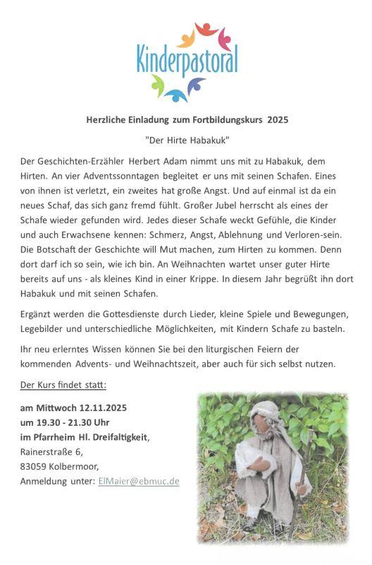 Die Veranstaltung richtet sich an alle Interessierten und an alle, die Kindergottesdienste vorbereiten und gestalten. Bei Interesse melden Sie sich bitte bei Elisabeth Maier (elmaier@ebmuc.de)