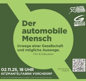 Am 2. November um 18:00 Uhr laden die Grünen Vorchdorf herzlich zum Filmabend „Der automobile Mensch“ in die Kitzmantelfabrik ein!