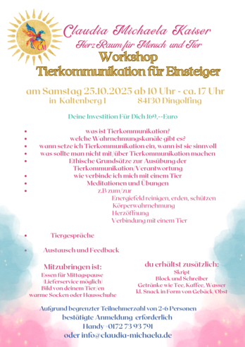 Der Workshop findet in Präsenz statt und ist auch die Basis für die folgenden Aufbau Workshops Tierkommunikation