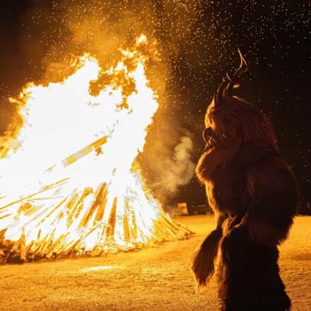 Am 21.12.2025 beleben Traditionen und Bräuche die längste Nacht des Jahres: unterschiedliche Perchten- & Sagenfiguren der „Wallersee-Perchten“ treiben heuer wieder um das wärmende Wintersonnwendfeuer im Strandbad.