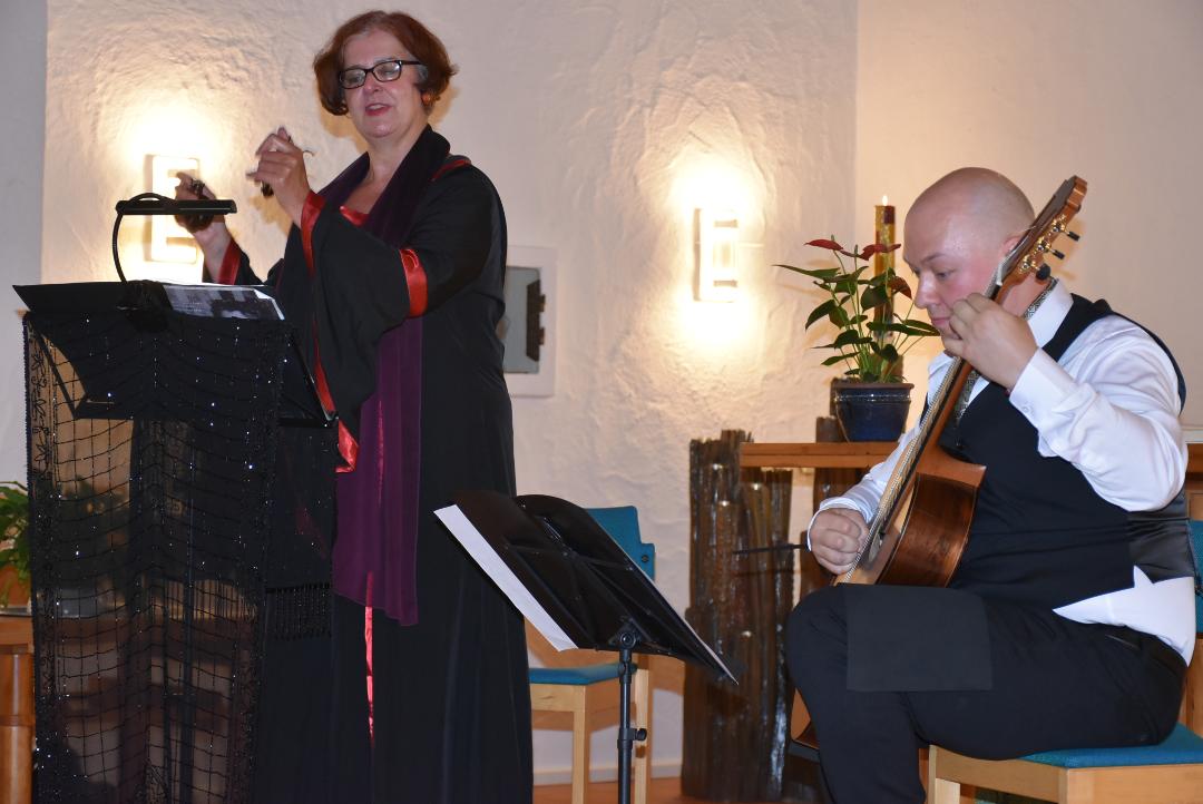 Wir als Duo für Gesang und Klassische Gitarre präsentieren ihnen heute eine Auswahl von Liedern, untermalt mit Texten und Gedichten.