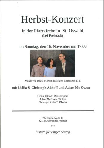 Musik von Bach, Mozart, russische Romanzen u. a.