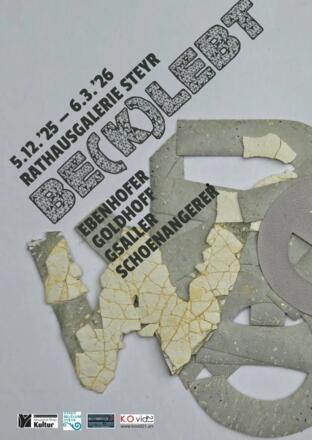 Vier Künstler reagieren konzeptuell auf die seit der 4. Themenausstellung (Anfang 2022) mit Zitaten beklebte Wand im 1. OG der Rathausgalerie Steyr. Vier Zitate von Lao-Tzu, W. Ebenhofer, Hannah Arendt und W. Heisenberg waren damals Teil ihrer Installation. Völlig unerwartet verbanden sich die Texte innig mit der Rathauswand. Ursprünglich leicht ablösbar wurde überraschend eine starke Kunst und Rathaus verbindende Situation geschaffen, die sich von beklebt zu belebt wandelte. Ein starkes Zeichen für lebendige Kunst in einem ehrwürdigen Haus von Politik und Amt. Von der Vergangenheit über die Gegenwart in die Zukunft, zeitgenössisch, bildend und Kunst offen. 14 Ausstellungen haben die Schriftzeichen bzw. Zitat-Relikte bereits miterlebt. Jeder der vier Künstler hat seinen eigenen Zugang zum aktuellen Thema „be(k)lebt“. „Man kann auf die Ergebnisse – erweitert auf nun zwei Stockwerke – gespannt sein“, so Kurator Johannes Angerbauer.